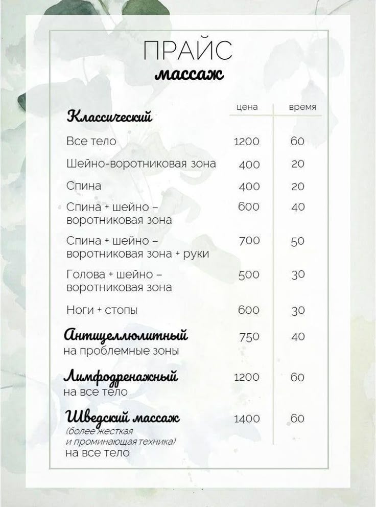 - Уточняйте дополнительные услуги. При выборе массажиста обратите внимание не только на цену основной процедуры, но и на наличие дополнительных услуг, которые могут повлиять на итоговую стоимость.