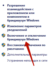 Переходим ко вкладке «Включение и отключение брандмауэра Windows»;