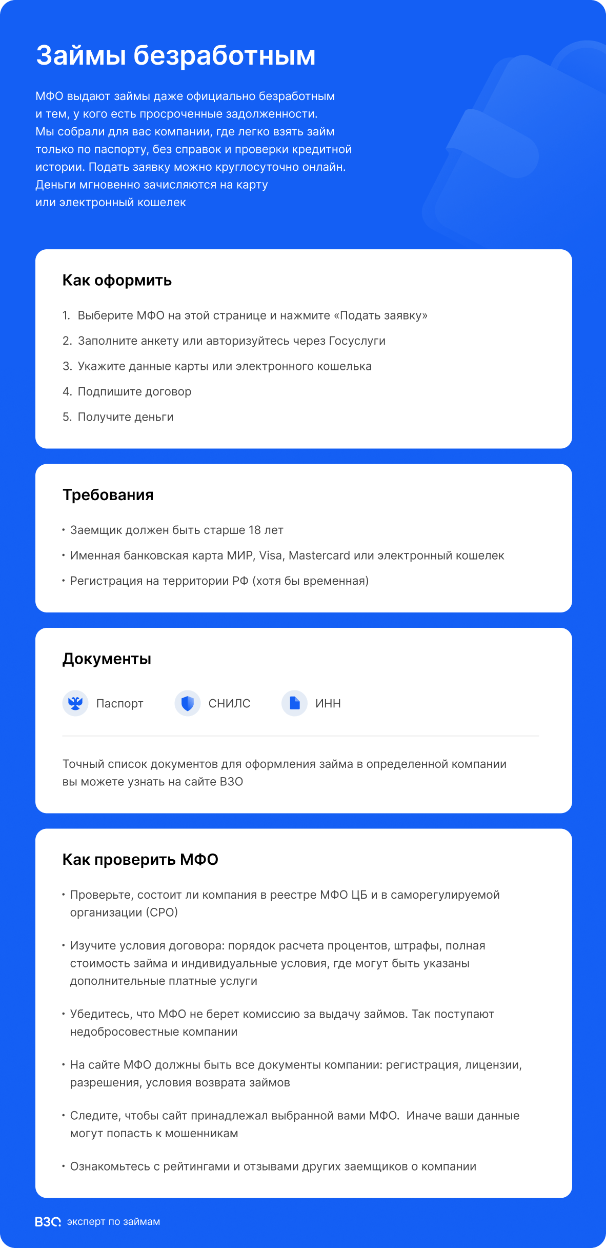 Обзор 48 МФО, предлагающих займы безработным без отказа