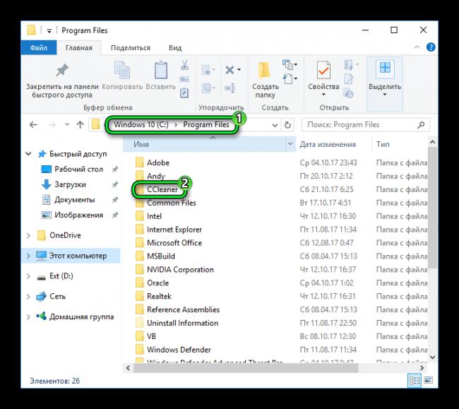 Если СиКлинер ранее устанавливался на компьютер и удаление выполнялось штатным деинсталлятором, на устройстве могли остаться мусорные файлы. Именно они могут препятствовать новой инсталляции утилиты. Чтобы от них избавиться, нужно перейти в папку «Program Files», найти каталог «CCleaner» и удалить его вручную.